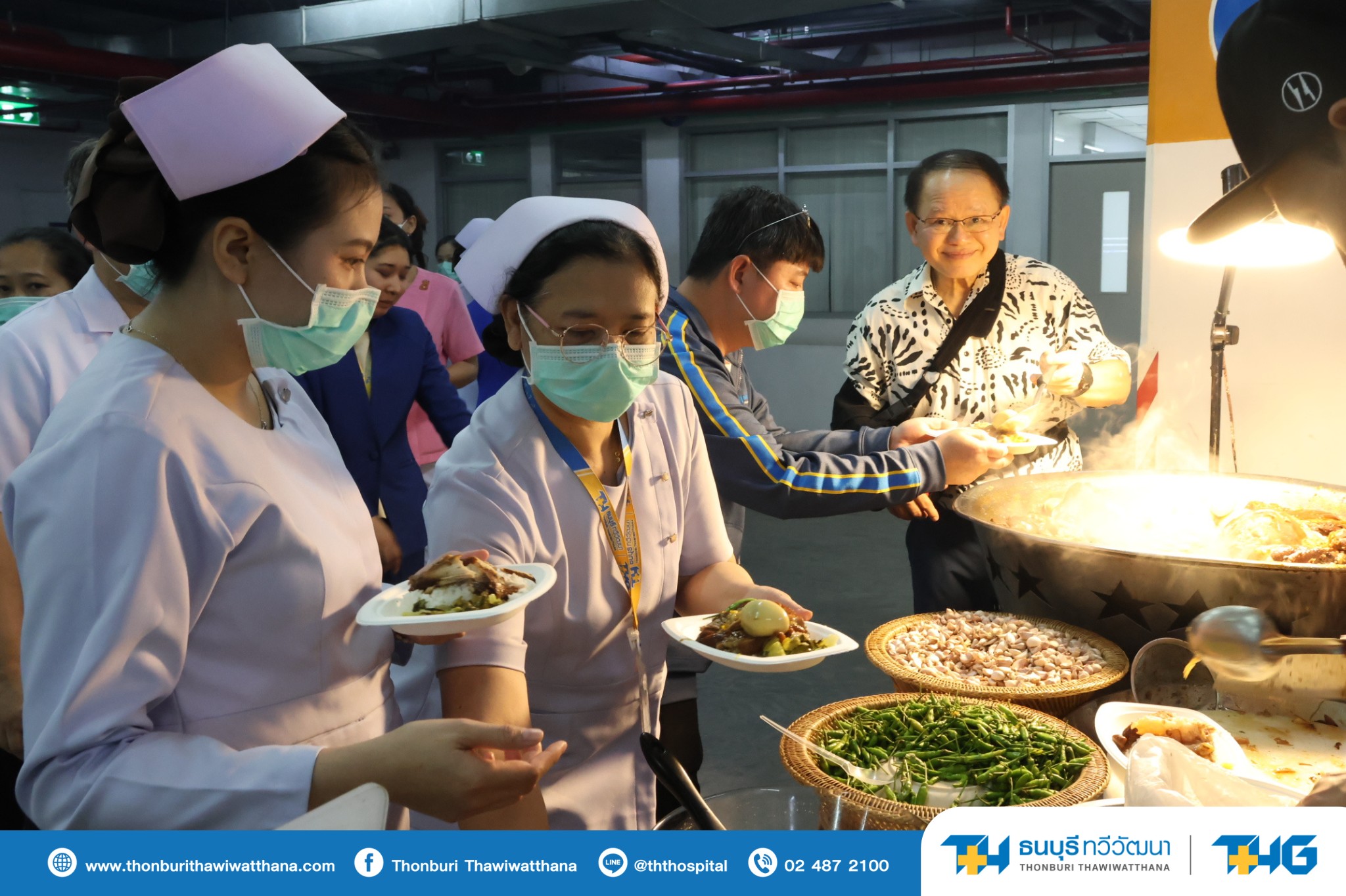 บรรยากาศงานเลี้ยงอาหารกลางวันประจำปี 2569 เนื่องในโอกาสครบรอบ 33 ปี ของโรงพยาบาลธนบุรี ทวีวัฒนา ได้จัดขึ้นเพื่อแสดงความขอบคุณแก่พนักงานทุกท่าน สำหรับความทุ่มเทและแรงใจที่ร่วมกันขับเคลื่อนองค์กรมาอย่างต่อเนื่อง ภายในงานเต็มไปด้วยความอบอุ่น รอยยิ้ม และความสุขของทุกคน สะท้อนถึงความผูกพันและการก้าวเดินไปข้างหน้าร่วมกันอย่างมั่นคงขององค์กร